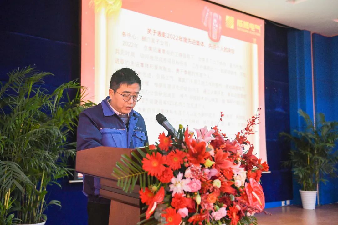 威腾电气董事、集团副总裁吴波宣读了《威腾集团2022年度表彰先进的决定》,对在2022年度工作中成绩突出的40个先进集体,123名先进个人予以表彰。过去的2022年,他们奋发进取、尽职尽责,为公司各项事业发展做出了卓有成效的贡献!
