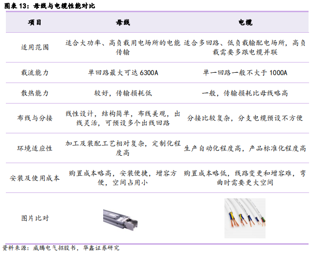 输配电需求增长,母线高性能实现市场存量替代。现代化工程设施和装备涌现、用电量激增、众多高层建筑和大型厂房车间的出现,使得作为输电导线的传统电缆在大电流输送系统中已不能满足要求,母线较传统电线电缆具有占用面积小、过载能力强、分接方便、寿命长等优点,在二者的共同应用领域即配电以及发电厂、用电设备等建筑内部电能输配中具有一定替代性,目前作为大电流传输中电缆的升级产品而被市场广泛认可与使用,可实现现有输配电市场存量替代。