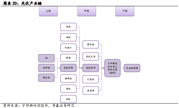 位于光伏产业链中游,光伏组件重要辅材。光伏焊带又称为镀锡铜带或涂锡铜带,分为互联条、汇流条。光伏焊带位于光伏产业链的中游,其上游主要是铜、锡合金和助焊剂等原材料供应商,不同尺寸的铜材构成焊带基材,锡合金等涂层材料构成其表面涂层;光伏焊带下游客户为光伏组件制造企业,通过将焊带应用于光伏电池片的串并联来发挥聚导电的作用。光伏焊带品质优劣直接影响电池片的电池收集效率,从而对光伏组件功率和光伏发电系统效率产生较大影响,是光伏组件的重要辅材。