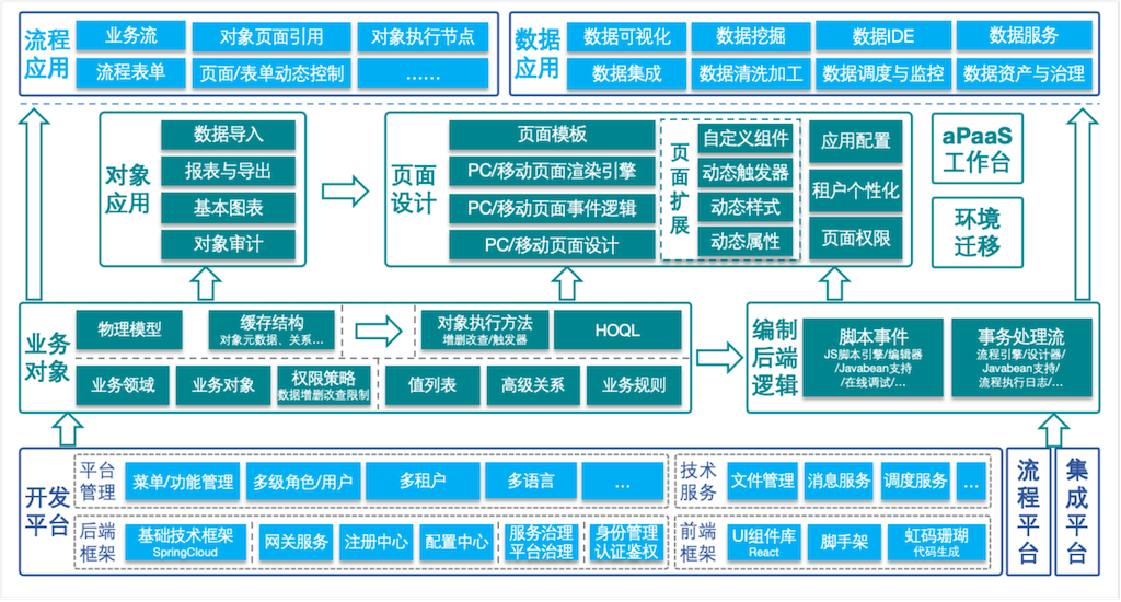 H-ZERO DevPaaS技术底座平台,是一套包含丰富组件的多租户、微服务、组装式开发平台,也是汉得所有事业部和子公司应用产品的技术底座。