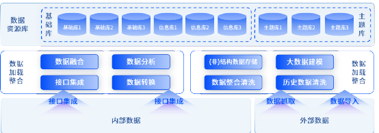 针对某市政府部门数据体量日趋庞大、来源多、类型杂等特性,品高股份搭建出一套数据分析子系统,通过数据接入接口和ETL功能,汇聚融合某市政府部门内部业务数据与外部数据等多源数据。在数据汇聚后,通过大数据应用、GIS等关键技术,对各类数据进行采集、清洗、分析、整合与管理,将业务信息转化成管理知识。