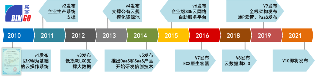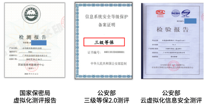 虚拟化云操作系统产品2010年2月上市商用,已获得保密局、公安部的安全、涉密与等保等资格认定。
