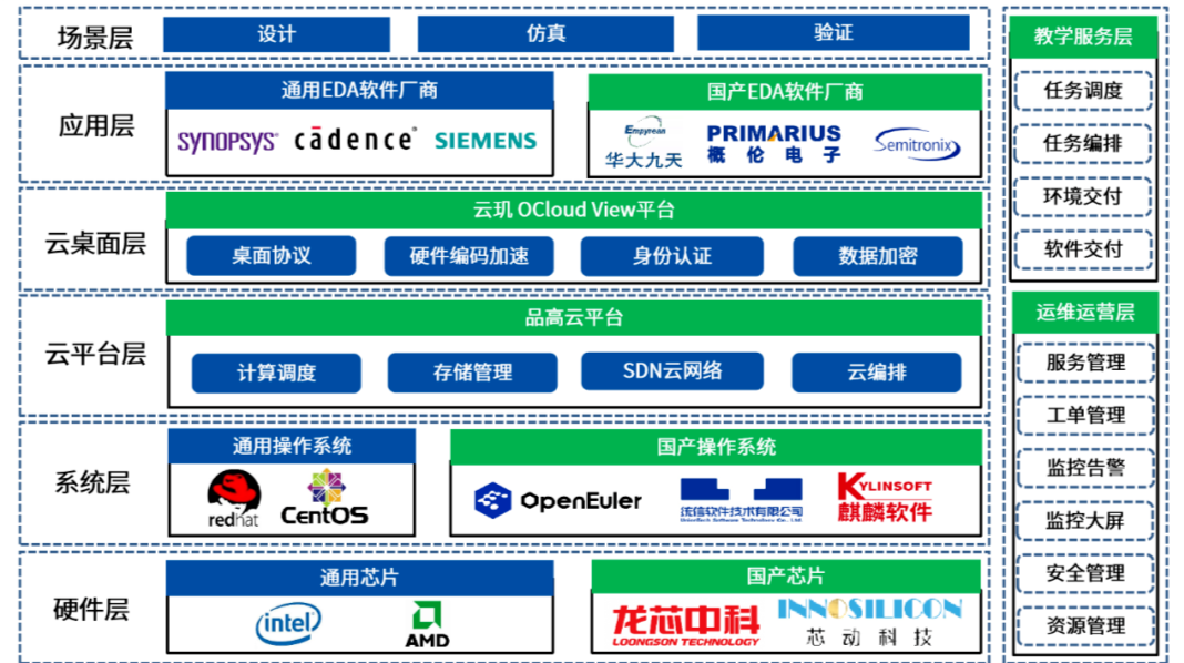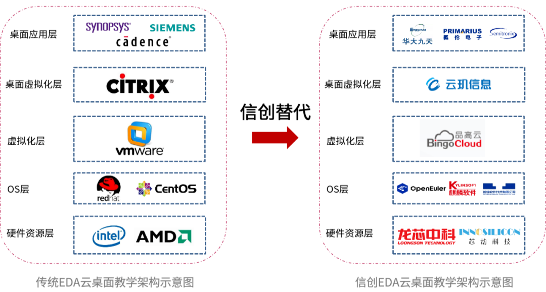 当前国内EDA云桌面将面临新的风险,为顺应国产化转型趋势,品高股份携手云玑信息打造了国产信创替代的EDA/仿真场景云桌面教学联合解决方案。该解决方案实现了传统EDA云桌面教学的全面信创替代。