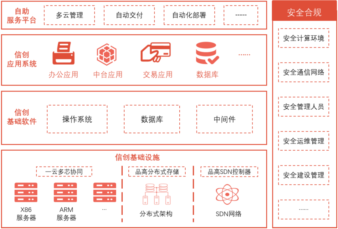 作为中国最早一批的信创云实践者和一云多芯、异构融合技术路线的先驱者,品高股份基于超十年成熟商用和近十年信创技术积累的云操作系统产品,结合经过实战验证的大规模信创替代方法论和符合工信部ITSS最高成熟度的云服务能力,助力广发证券构建稳定性强、高可用、符合金融等保安全合规要求的信创金融云平台。平台以多种异构的信创基础设施硬件为基础,支撑多元算力,并通过统一门户的方式提供给不同层级用户使用。