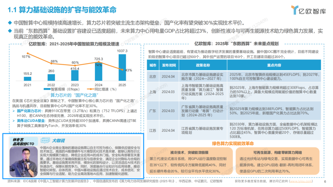 报告指出,在美国《芯片安全法案》背景下,中国智算的“国产化之路”机遇与挑战并存。一方面,语料、算力等基础设施发展掣肘于国外的限制与打压,亟需通过国产化实现突破;另一方面,随着国产智算、人工智能大模型的进步,AI融合应用不断深化拓展,催生出丰富多元的商业模式和科技成果。