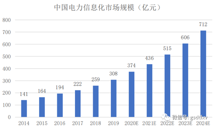 由此,能源数字化市场规模迎来较大增长,单单以其中的电力信息化为例,根据中商情报网数据,2020年中国电力能源信息化市场规模为374亿,并预计2024年达到712亿,期间复合增长率达到17.4%。