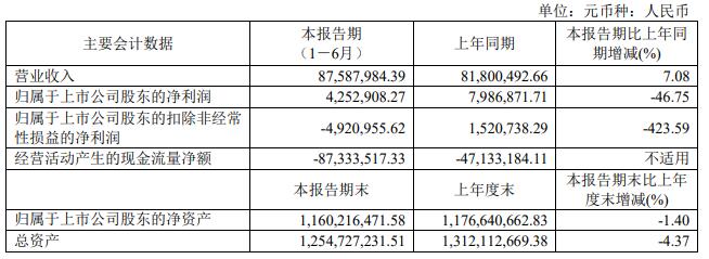 今年上半年,开普云实现营业收入8758.80万元,同比增长7.08%;归属于上市公司股东的净利润425.29万元,同比减少46.75%;归属于上市公司股东的扣除非经常性损益的净利润-492.10万元,同比减少423.59%;经营活动产生的现金流量净额-8733.35万元,上年同期为-4713.32万元。