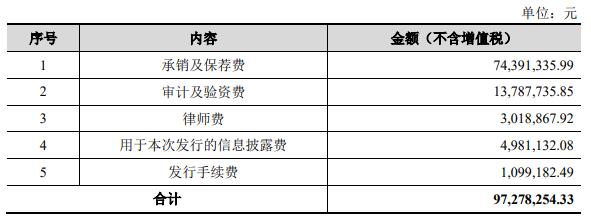 开普云首次上市发行费用合计为9727.83万元。其中,国金证券股份有限公司获得承销及保荐费7439.13万元。