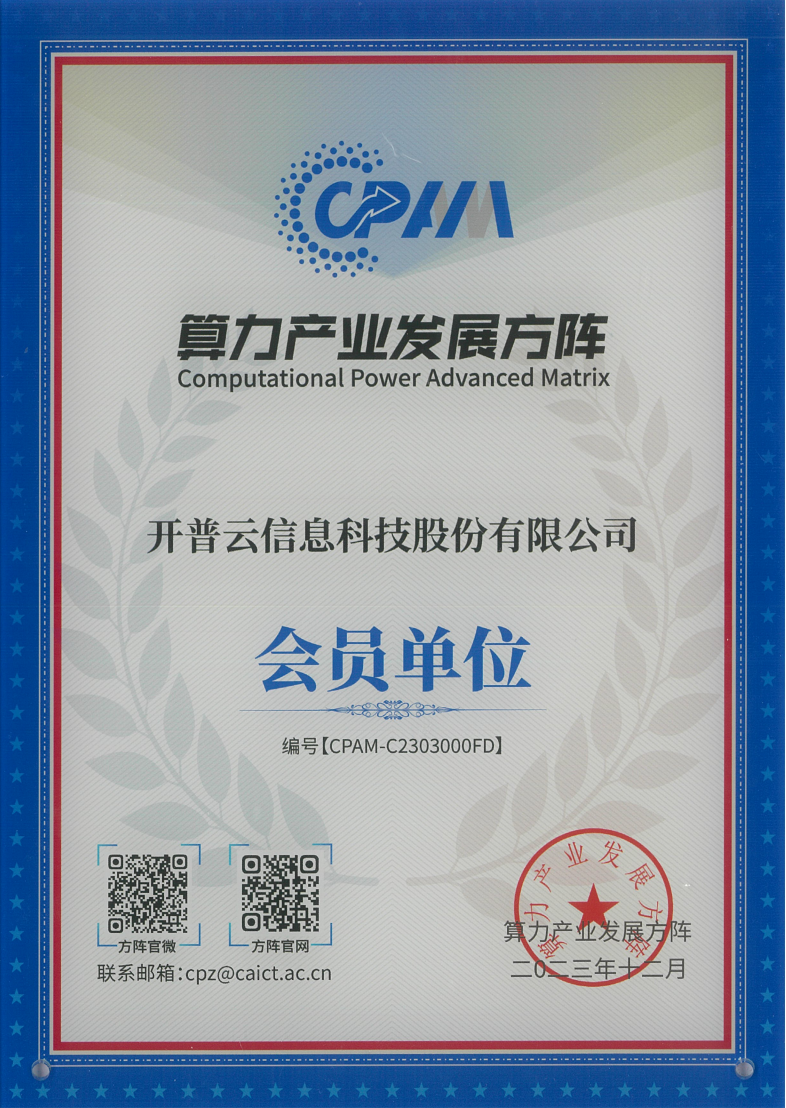 作为算力产业发展方阵的重要成员,开普云将积极联合政、产、学、研等多方力量,联合其他方阵成员伙伴,不断推进核心技术创新,加大投入算力产品和解决方案的研发,为我国数字经济与实体经济融合发展贡献力量。
