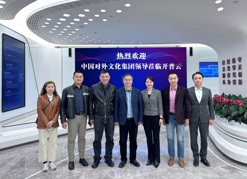 近日,中国对外文化集团有限公司董事、常务副总经理郭利群一行莅临开普云调研指导,中国对外演出有限公司副总经理黄宾等领导陪同调研。开普云集团总裁严妍、副总裁王瑛、未来科技研究院副院长倪金松接待来访领导。双方就如何借助人工智能技术赋能数字文化产业、提升文化新质生产力展开深入交流。