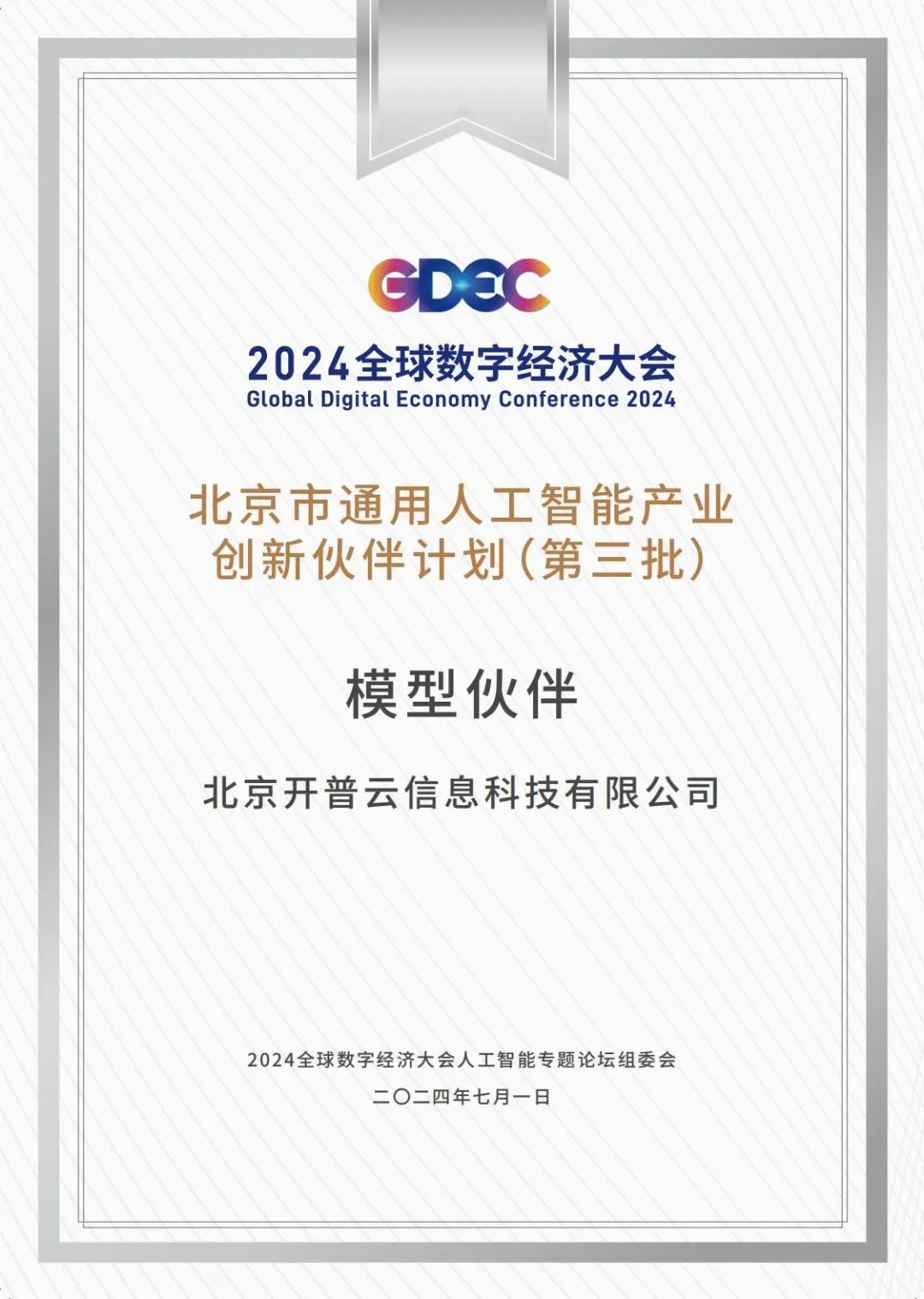 论坛现场发布了第三批“北京市通用人工智能产业创新伙伴计划”成员名单,开普云以“模型伙伴”身份入选,这将有助于公司加强与人工智能大模型产业链上下游的联系和交流。