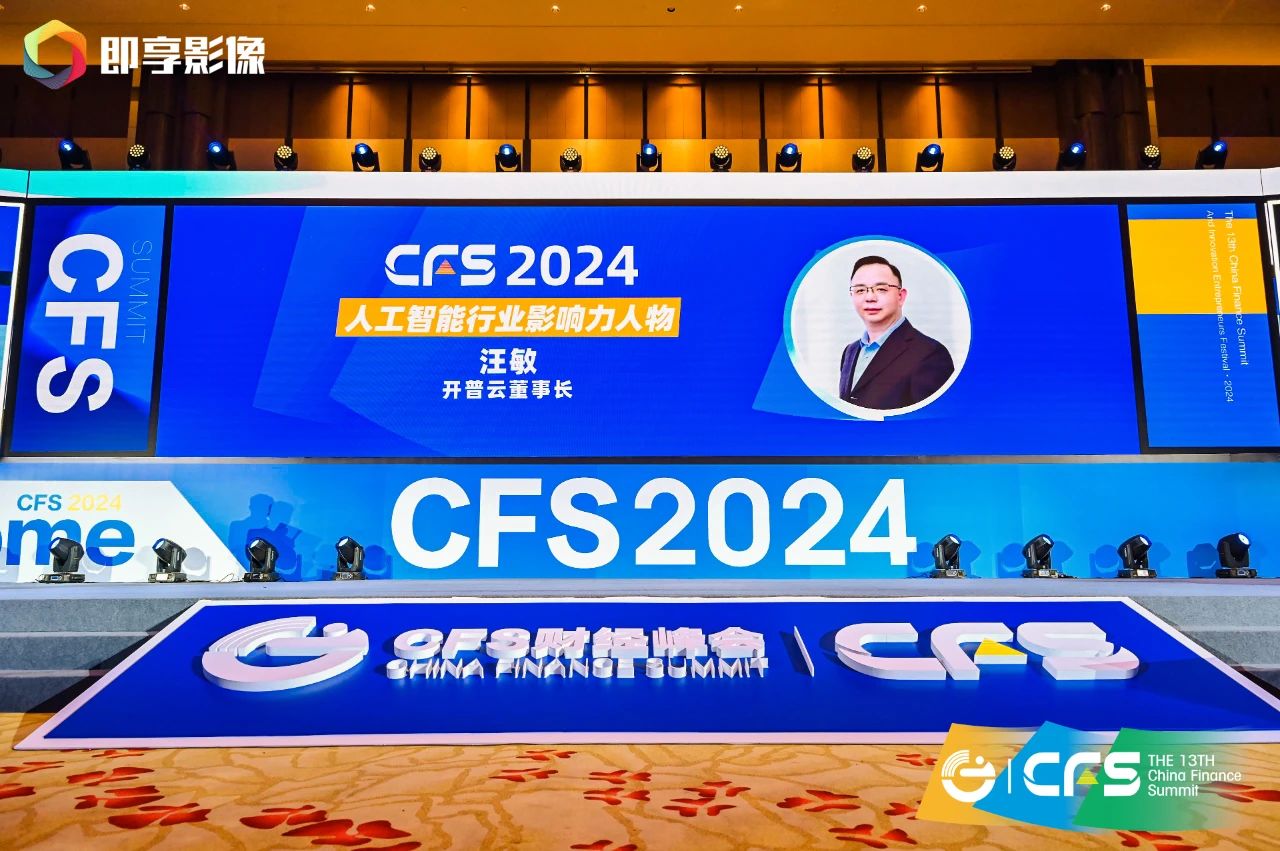 7月25日,CFS2024第十三届财经峰会暨Amazing2024创新企业家节在北京举行,作为中国经济领域颇具影响力的思想盛会,吸引了众多商界、政界、学界、传媒以及文化艺术等领域代表参加。开普云受邀参会,并在会上获得两个奖项——公司获得杰出人工智能引领奖,董事长汪敏被授予“2024人工智能行业影响力人物”称号。