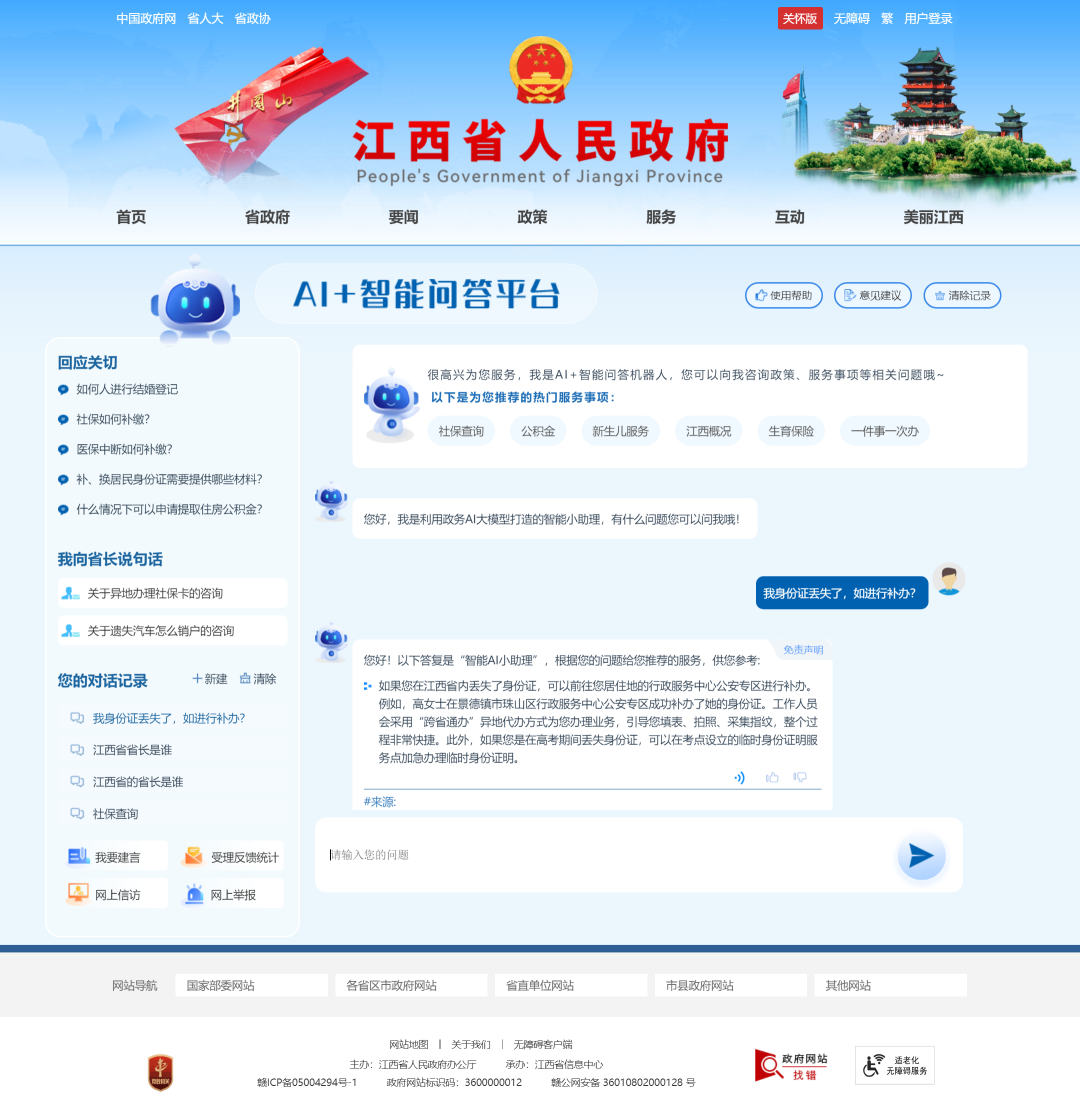在开普云人工智能技术的支持下,江西省人民政府门户网站实现了智能化服务的全面升级,为公众提供更加高效、便捷的政务服务。