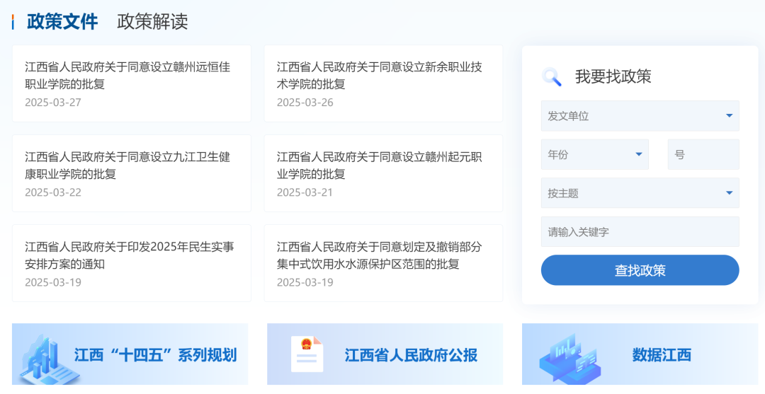 为满足用户对信息的全面检索需求,江西省新版政府网站构建了统一的智能搜索平台。该平台汇聚了省政府门户网站、省直部门等网站的丰富资源,提供新闻、政务、办事、附件文档、新媒体等多维度的信息分类搜索服务。