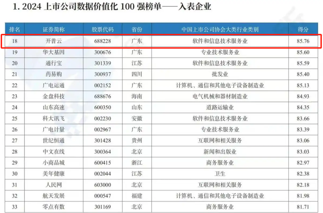 近日,由上海数据交易所、上海交通大学共同主办的中国企业数据价值化高峰论坛在沪举办。论坛以“企业数据价值化进程与入表实践”为主题展开研讨,发布“上市公司数据价值化研究榜单”等多项研究成果,开普云入选“2024上市公司数据价值化100强榜单”。