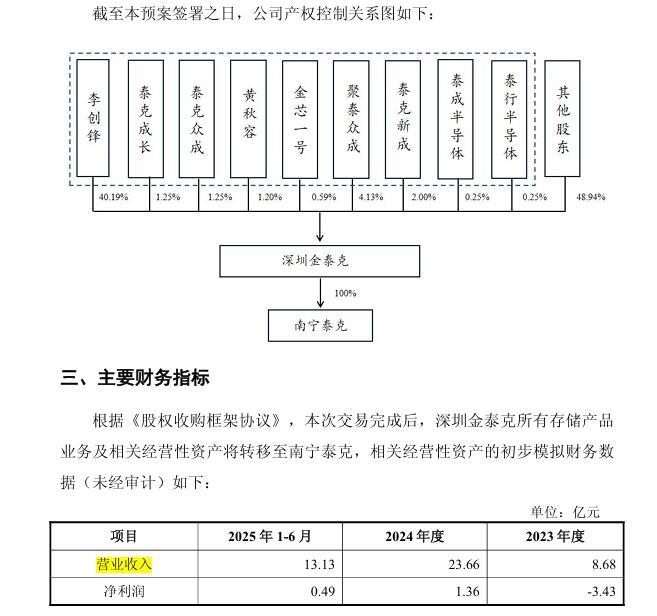 从业务基本面看,南宁泰克承接的存储业务已展现增长潜力。未经审计数据显示,南宁泰克(含金泰克所有存储产品业务及相关经营性资产)2023年营业收入为8.68亿元,净亏损为3.43亿元。2024年,南宁泰克营收跃升至23.66亿元,净利润扭亏为盈,达到1.36亿元。2025年上半年,南宁泰克营收为13.13亿元、净利润为0.49亿元,业绩改善趋势明显。