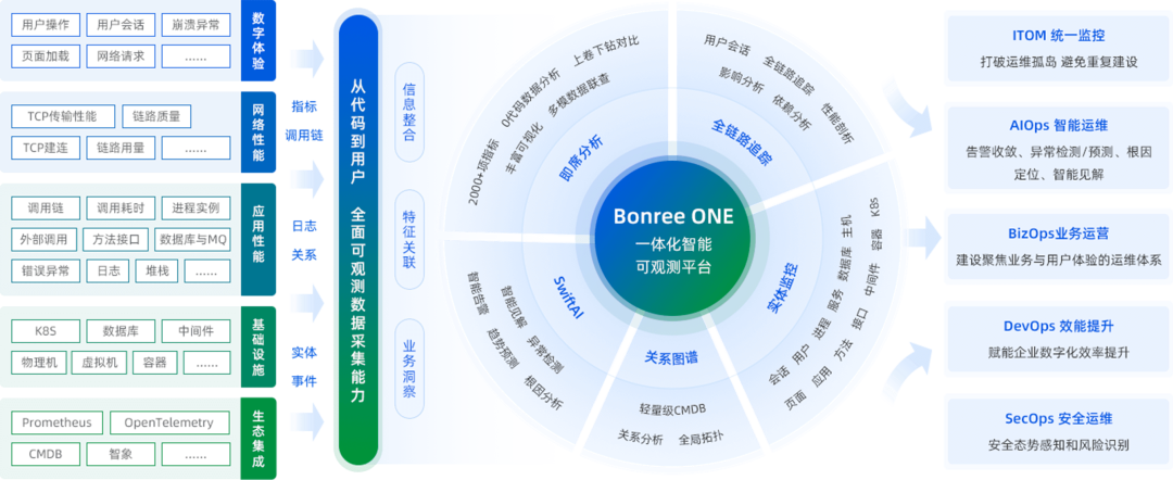博睿数据多年来一直聚焦信息技术发展,专注于构建以用户为中心的简捷、高效、智能的新型IT运维体系,持续推进可观测性等技术在信息技术应用产业中的拓展与创新。博睿数据核心产品Bonree ONE,是国内首个真正实现智能运维的一体化智能可观测性平台,凭借领先的大数据采集和智能分析能力,以及稳定强大的中台能力,真正实现IT系统全栈、全链路、全场景的智能可观测,为企业数字化业务保驾护航。