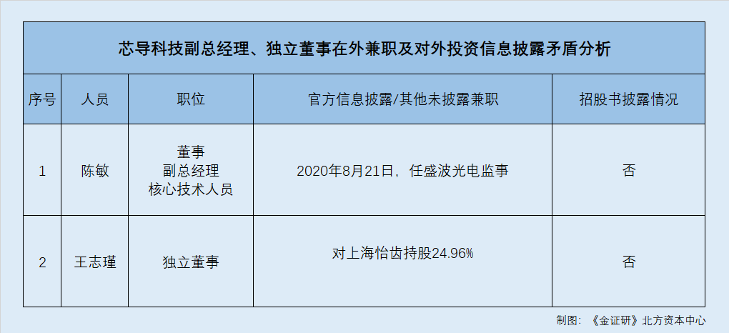 换言之,芯导科技招股书或未披露其董事、副总经理、核心技术人员陈敏的在外兼职情况,及其独立董事王志瑾的对外投资情况,信息披露现疑云。