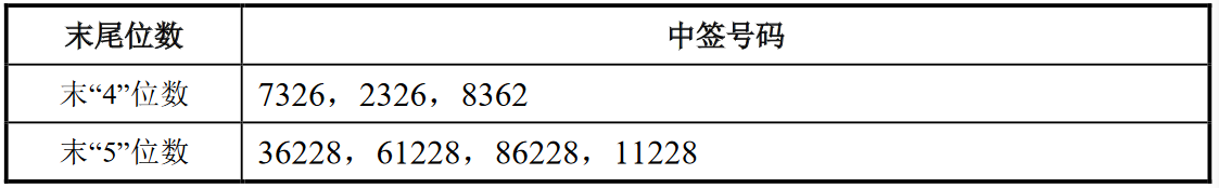 凡参与网上发行申购国泰新点软件股份有限公司股票的投资者持有的申购配号尾数与上述号码相同的,则为中签号码。中签号码共有5.381万个,每个中签号码只能认购500股新点软件股票。