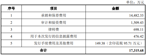 新点软件上市保荐机构为国泰君安证券,保荐代表人是夏静波、李宁。本次发行费用总额为1.73亿元,其中国泰君安证券获得承销和保荐费用1.45亿元。
