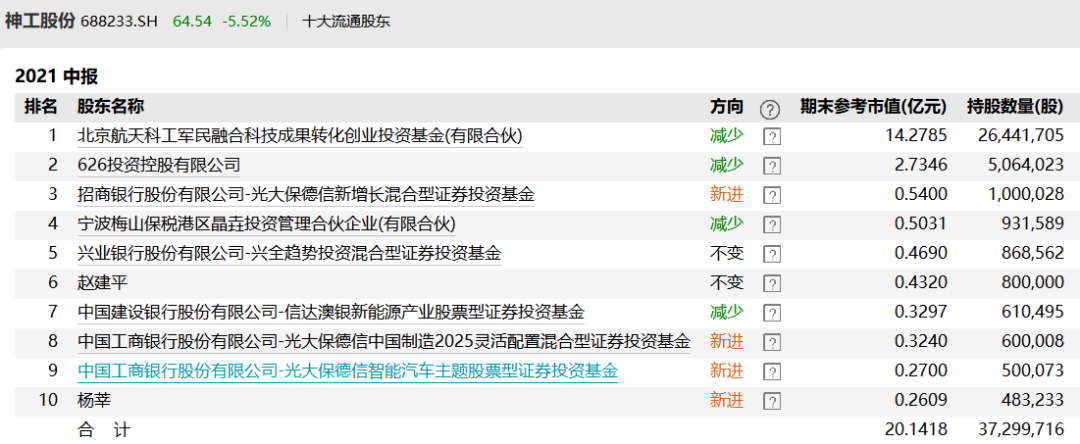 企查查显示,神工股份无实际控制人,股东均为机构,前三大股东分别为更多亮照明、矽康半导体、航天科工创投基金;其中,航天科工创投成立于2012年9月,是航天科工资产管理有限公司联合北京市科委所属单位及业内知名投资机构共同发起设立,最终受益人是国务院国资委。