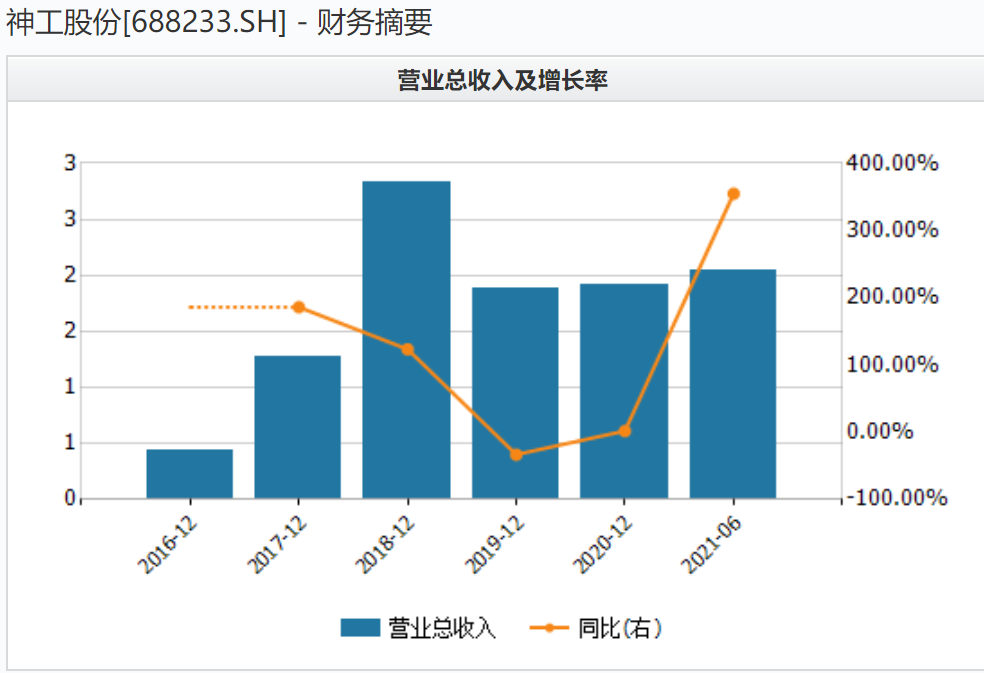 今年上半年,神工股份营业收入2.04亿元,同比增长354.8%;净利润1亿元,同比增长415.4%,相当于去年全年净利润水平。