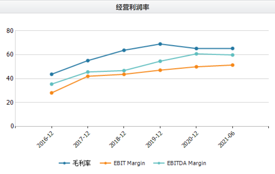 盈利能力方面,2020年及今年上半年,公司毛利率均在65.3%左右,不及2019年的69%;净利率近五年来呈现逐年走高态势,从2018年的37.7%增加到了最新的49%。