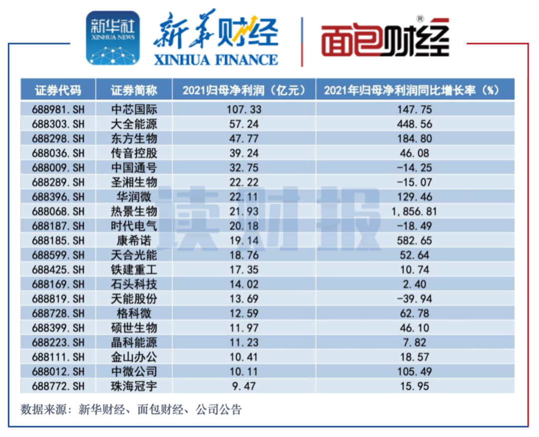 中芯国际、大全能源、东方生物位列利润榜前三百济神州成“亏损王”