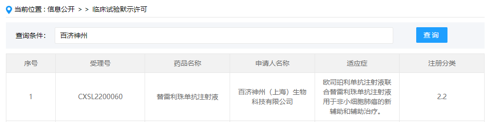 4 月 11 日,CDE 官网显示,百济神州替雷利珠单抗+?欧司珀利单抗联合疗法获批临床,用于非小细胞肺癌辅助和新辅助治疗。