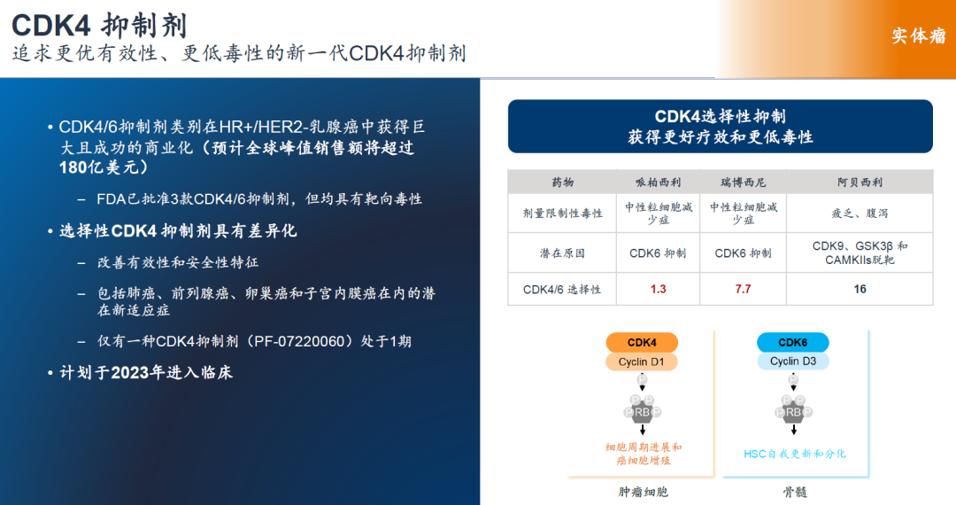 从机制上来讲,CDK4抑制剂有望比CDK4/6达到更好的有效性与更低的毒性。