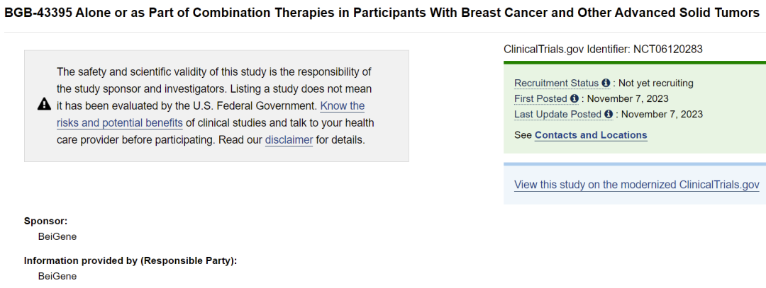 2023年11月7日,百济神州在Clinicaltrials.gov网站上注册了BGB-43395的一期临床试验。