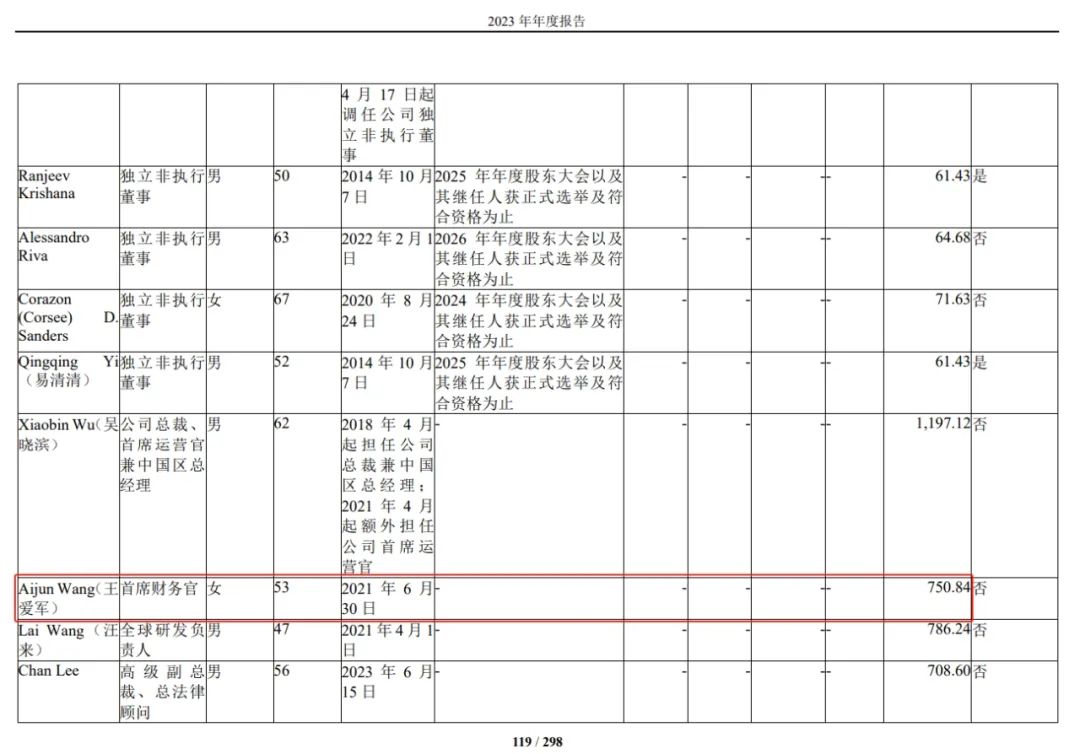 据2023年年报显示,王爱军现年53岁,1992年毕业于山东师范大学,获得英国语言文学学士学位,1999年获得杜克大学富卡商学院工商管理硕士学位。她自2020年起担任百济神州企业优化高级副总裁兼副首席财务官,并自2021年6月起担任首席财务官。