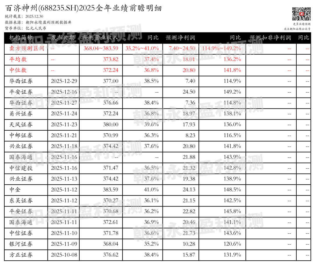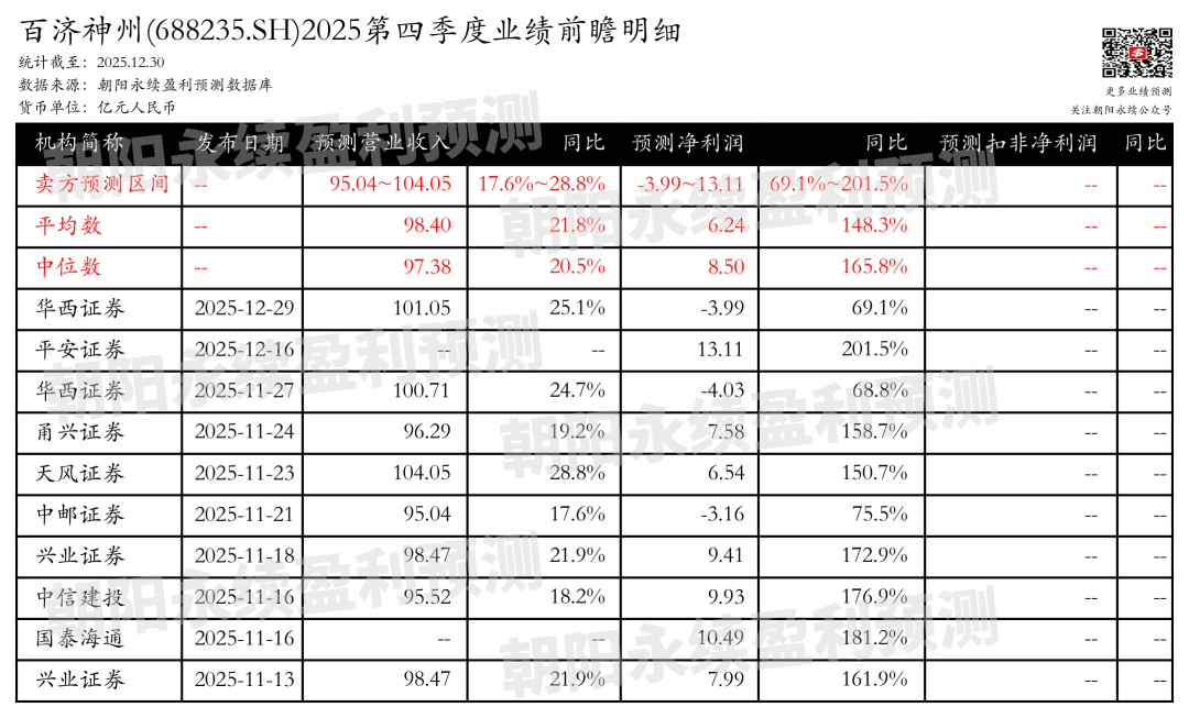 截至2025年12月30日,根据朝阳永续季度业绩前瞻数据: