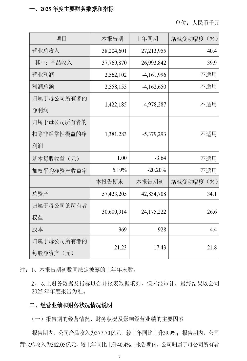 公告显示,公司全年实现营业总收入382.05亿元,同比增长40.4%;归属于母公司所有者的净利润14.22亿元,同比扭亏为盈,一举告别多年亏损局面。