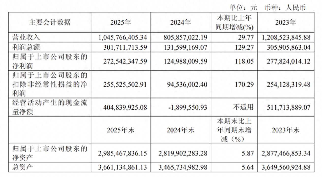 2025年,春立医疗实现营业收入10.46亿元,同比增长29.77%;归属于上市公司股东的净利润2.73亿元,同比增长118.05%;归属于上市公司股东的扣除非经常性损益的净利润2.56亿元,同比增长170.29%。