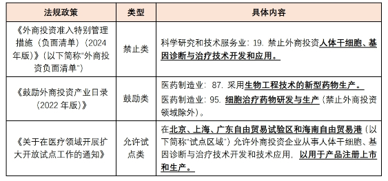 图1:中国细胞与基因治疗行业(CGT)外商准入政策