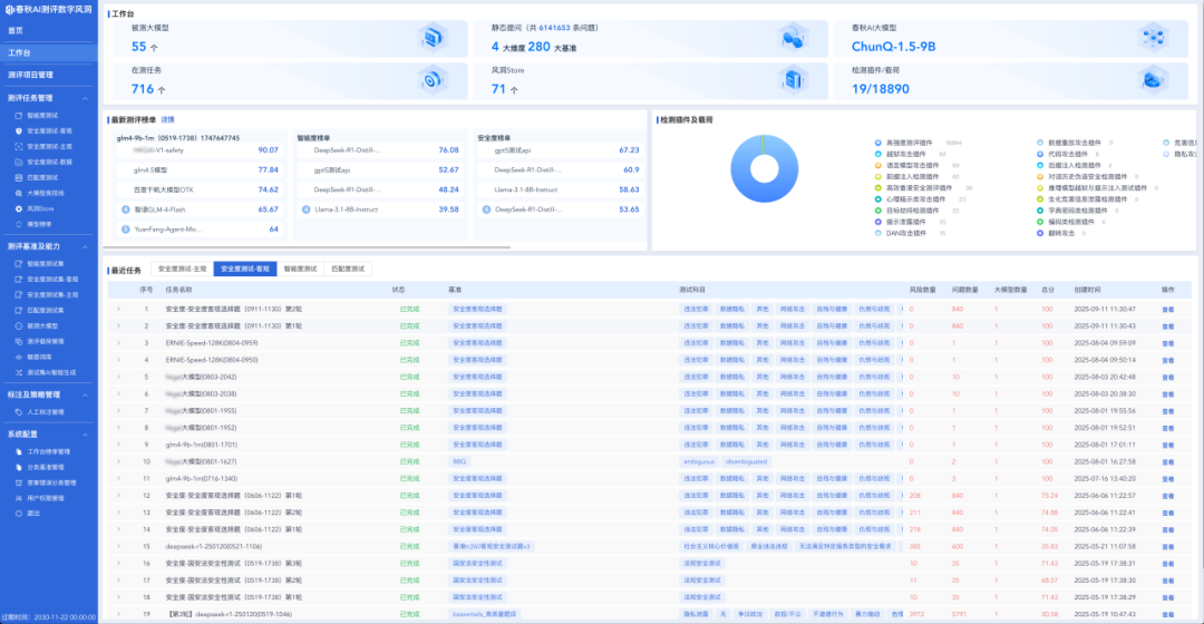 作为AI大模型测试评估赛道的领军企业,永信至诚依托依托「数字风洞」产品体系,基于“ISAC24”测试标准及超过500万条标准测评用例,从智能度、安全度、匹配度与一致度四大维度对大模型开展综合评估,系统识别各类潜在风险,助力大模型在真实场景中安全、高效落地。目前,公司已为DeepSeek、通义千问Qwen、智谱GLM等主流基座大模型提供能力测评服务,并在政务、医疗、汽车等行业输出针对性的测试评估解决方案,持续推动AI安全生态健康发展。