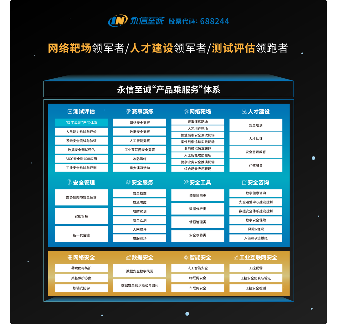 作为数字安全测试评估赛道领跑者,网络靶场与人才建设领军者,永信至诚将持续深化人工智能安全技术研究,推动人工智能领域标准化建设,并在产品研发、解决方案设计、培训服务等方面全面落实标准要求,保障数字健康,带给世界安全感。