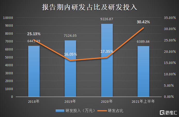 公司近年来不断加码研发,报告期研发费用依次为6441.39万元、7124.05万元、9226.87万元和6389.64万元,占公司营业收入的比例依次为25.13%、16.05%、17.35%和30.42%。研发投入占营业收入的比例逐年增加。持续地研发费用投入促进了公司产品和服务研发的顺利开展,同时让公司的研发团队日益壮大。