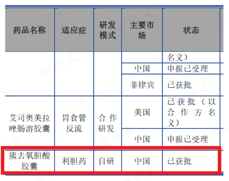 除了公司,还有两家厂商在中国获批上市,一家是原研药厂商Dr falk,另外一家是仿制药企业安士制药。