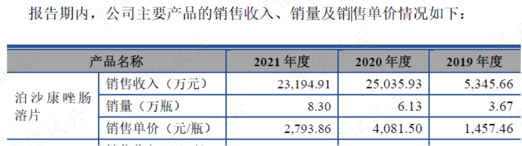 实际上,公司的泊沙康唑的销量是增长的,从2020年的6.13万瓶增长至2021年的8.3万瓶。但无奈销售价格下降得太多,从4081.5元/瓶下降至2793.86元/瓶,完全冲抵了销量增长带来的积极影响,最终导致收入下滑。