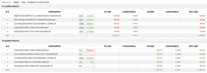 4月13日,宣泰医药今日涨停,龙虎榜数据显示,上榜营业部席位全天成交4826.75万元,占当日总成交金额比例为16.12%。其中,买入金额为2342.91万元,卖出金额为2483.84万元,合计净卖出140.93万元。具体来看,高盛高华证券上海浦东新区世纪大道证券营业部、摩根大通上海银城中路证券营业部分别买入554.02万元、487.69万元;华泰证券南京宁双路证券营业部、申万宏源西部证券有限公司乌鲁木齐扬子江路证券营业部分别卖出585.42万元、545.90万元。