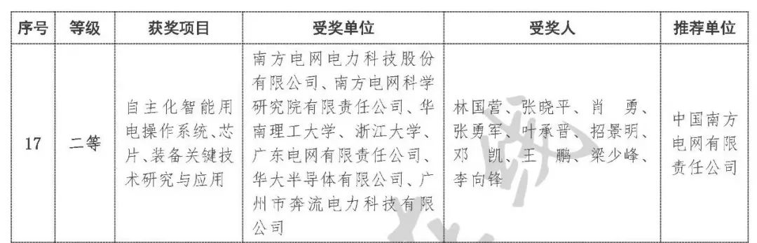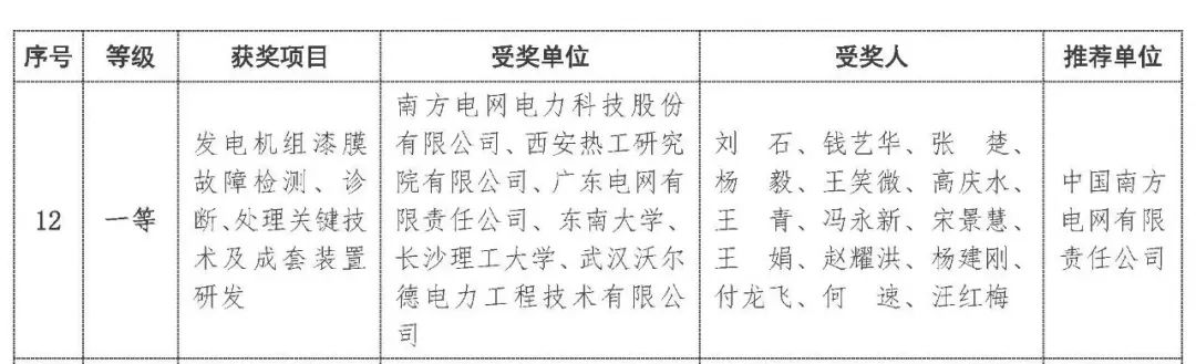 12月13日,中国电机工程学会、电力科学技术奖励工作办公室发布了2022年度中国电力科学技术奖奖励通报。其中,由南方电网电力科技股份有限公司(以下简称“南网科技公司”)主持的“发电机组漆膜故障检测、诊断、处理关键技术及成套装置研发”、“自主化智能用电操作系统、芯片、装备关键技术研究与应用”两个项目分别荣获2022年度中国电力科学技术进步奖一等奖、二等奖。