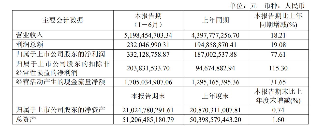 近日,合肥晶合集成电路股份有限公司(688249.SH,以下简称“晶合集成”)披露的2025年半年度报告显示,2025年上半年,该公司实现营收51.98亿元,同比增长18.21%;实现归母净利润3.32亿元,同比增长77.61%;经营活动产生的现金流量净额为17.05亿元,同比增长31.65%。