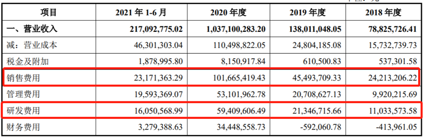 在费用端,英诺特报告期内的研发费用均低于销售费用。以最吸金的2020年为例,销售费用超1亿,而研发费用仅为5941万。招股书披露,截至报告期末,公司拥有核心技术人员3名,研发人员 69名,占员工总数的 18.90%。与同行业其他公司相比,研发费用率并未占据领先优势。