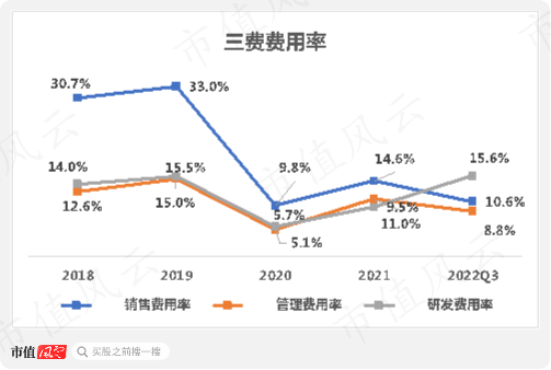但从公司近年来三费费用率来看,2018-21年研发费用远不及销售费用。以业绩最好的2020年为例,公司销售费用超过1亿,而研发费用不足6000万。