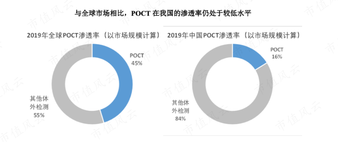 我国POCT在体外检测领域的渗透率还比较低,远落后于美国水平。