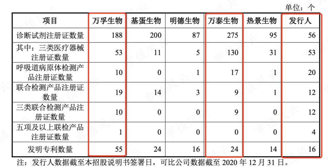 截至2020年末,公司在检测试剂注册证总数上不及竞争对手万孚生物和万泰生物,但在申请较有难度的三类检测试剂注册证数量上超过竞争对手。