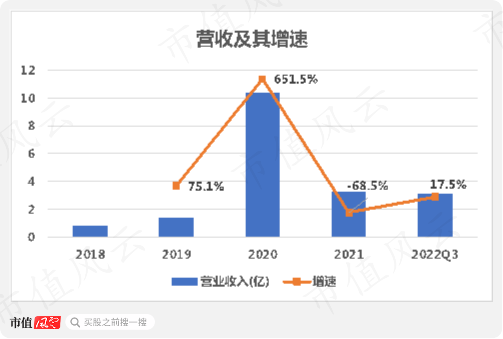 但2020年疫情爆发后,公司营收一跃而起,突破10亿规模,同比暴增650%。而2021年又下降至3.2亿,仅占2020年全年的31%。