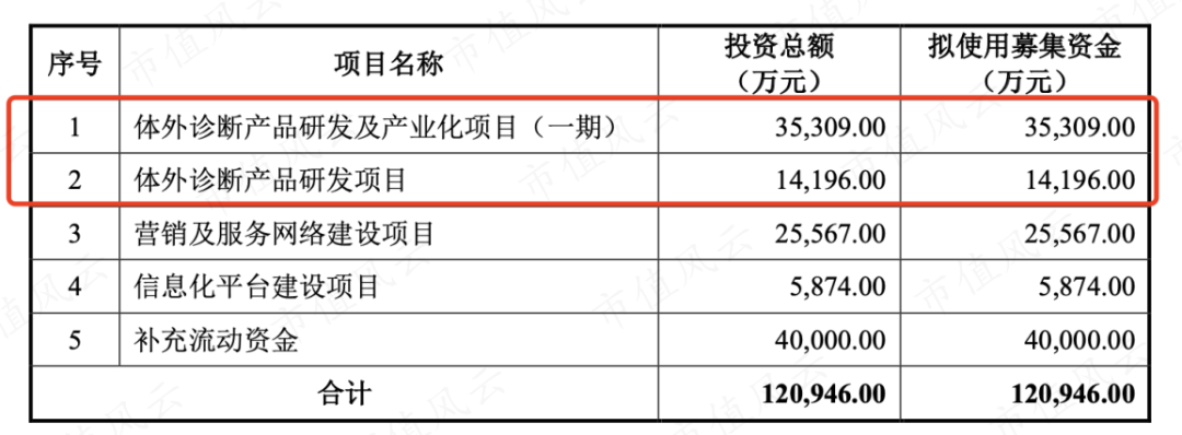 而此次上市公司拟投资3.5亿来扩建产能,表里项目1建成后将新增3255万人份体外诊断试剂与480台体外诊断仪器的生产能力。预计2年达产后,可以新增年收入3.6亿。